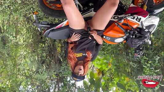 öffentlicher blowjob. rothaarige freundin atmet draußen einen meißel ein. echt riskantes saugen im wald