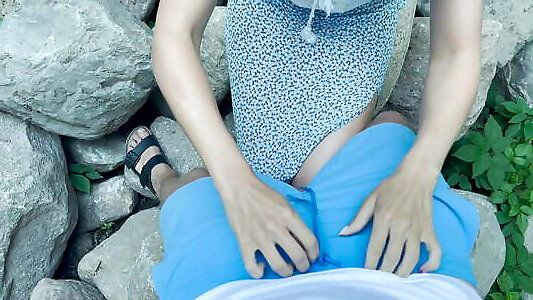 molliges mädchen lutscht schwanz im wald, öffentlicher blowjob