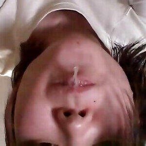 sperma in den mund einer süßen entzückenden schluckenden sommersprossen-rothaarigen - blowjob füße hoch mit sohlen pov