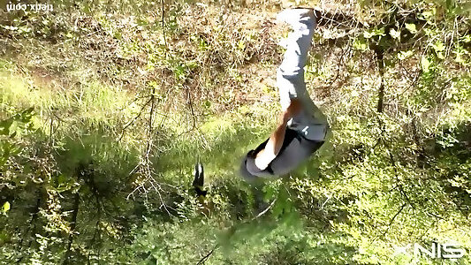 heiße brünette stolpert und ihre freundin, der zwerg, kommt, um ihr beim heben zu helfen