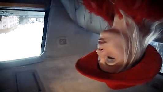 ángel de pelo claro hace una burla de striptease y luego lame la polla en las escaleras
