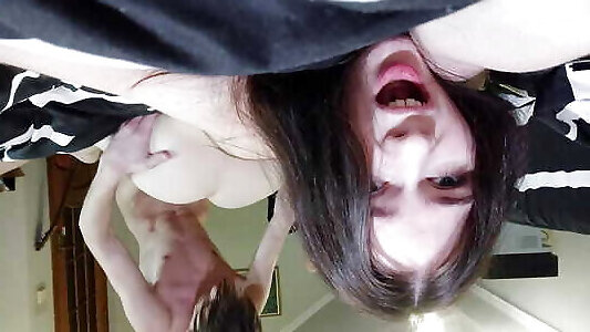 ultra-kinky bomba asiática maneja una gran polla una cara de garganta profunda penetrante