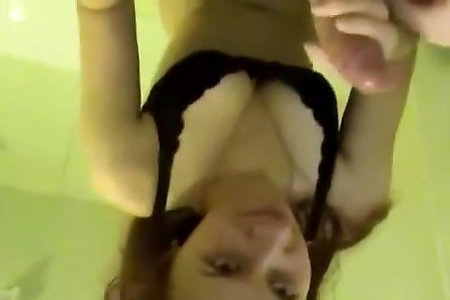 después de que la chica limpiara los baños, la chica limpió mi esperma-escopeta y se llevó un baño