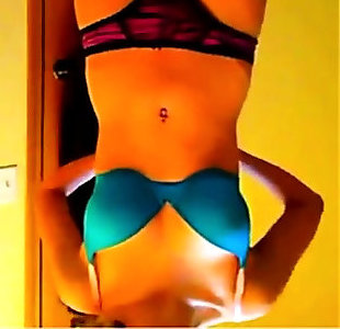 mi novia mostró sus bragas rosadas en medias, luego se desnudó y se masturbó nena
