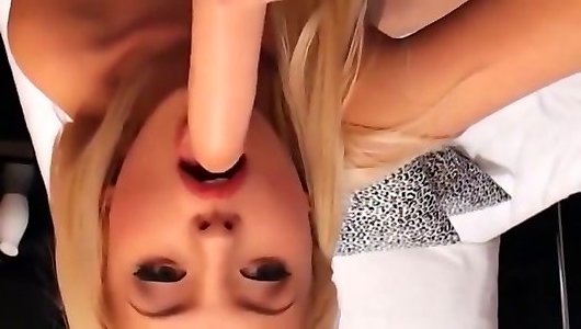 une adolescent ado blonde maigre avec de petits seins reçoit une éjaculation interne en gorge profonde
