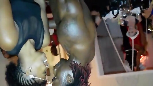 la séduisante méga-salope noire est en train de tomber en pompe en 69 position