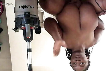 solo plumper ebony nettoie et remue ses énormes sacs amusants