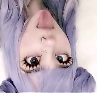 cheveux roses e-girl salope baise la gorge bâclée jusquau visage