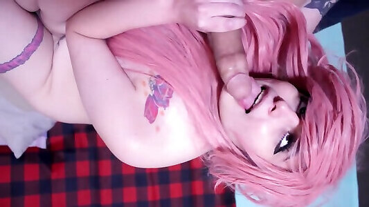 je suis ta salope e-girl aux cheveux roses qui fait le visage dahegao et bave sur une énorme bite dans une séance de baise de gorge bâclée jusquau visage