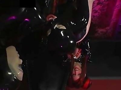 une beauté chaude se fait enlever son latex et obtient un joli trio à la place
