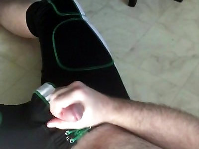 taquineries du mamelon masculin et éjaculation massive mains libres sur une assiette