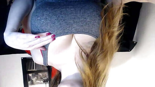 babe aux longs cheveux blonds espionnée par son petit ami et le cul baisé devant la webcam