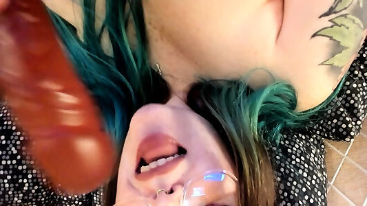 webcam amateur salope avec un gros rack suce son gode collé au mur