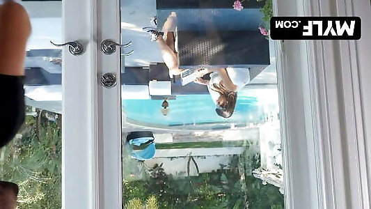 daddy4k. un homme accroché étire la chatte de la copine de son fils sydney cole près de la piscine
