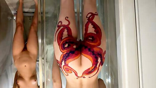 demi-soeur se filme sous la douche sur cam pour montrer un énorme tatouage de cul de poulpe