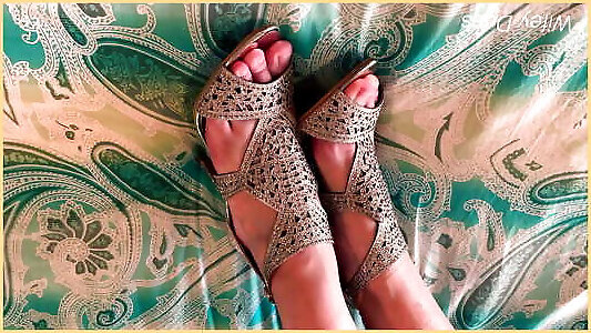wifey montre ses nouveaux talons hauts et ses pieds dans une jupe serrée