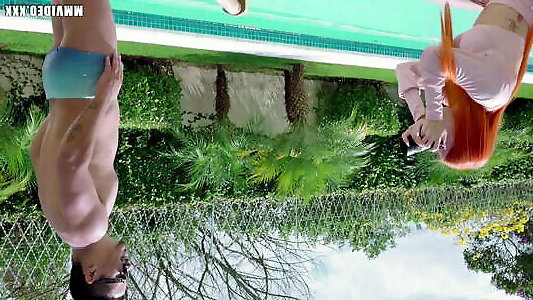 deux dames noires vissées dans le johny sins solo au bord de la piscine