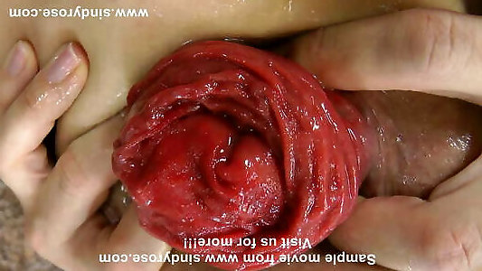 hotkinkyjo en tenue rouge sexy prend dénormes couilles dans son cul et son prolapsus anal extrême