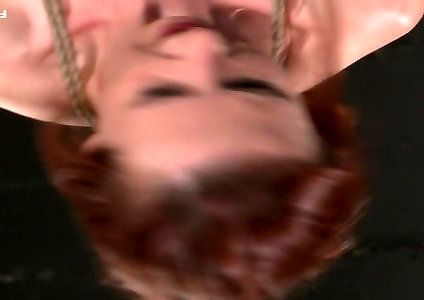 coups de poing à la tête cramoisi, enculé à la corde, largement ouvert et gode le visage