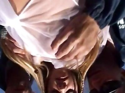 une adolescente blonde de 18 ans avec de petits seins se fait tirer dessus dans la gorge après bettna and orgie en van