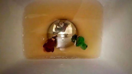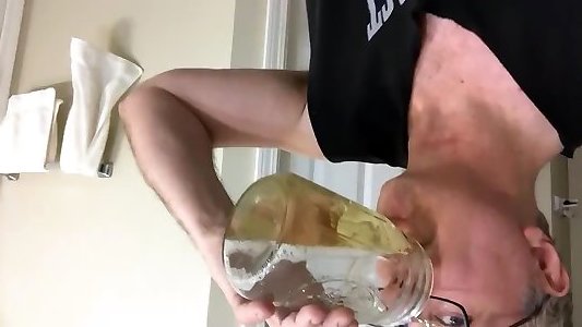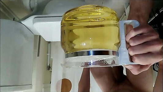 pipi dans un pot à la salle de bain avec mon urine. douche dorée