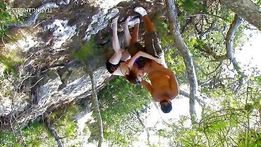 une rousse devient chaude en randonnée alors elle écarte ses longues jambes pour son petit ami