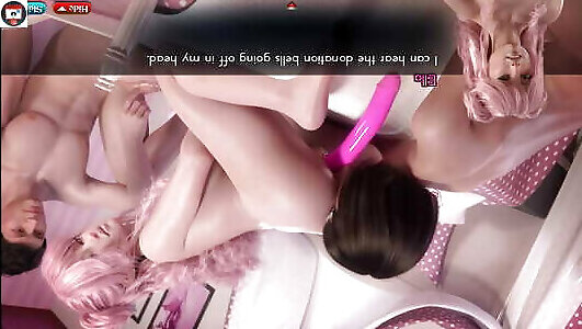 deux salopes excitées jouant avec les gros seins juteux de l&039;autre, pervers regardent d & 039; énormes seins-summertime saga jeu porno 3d