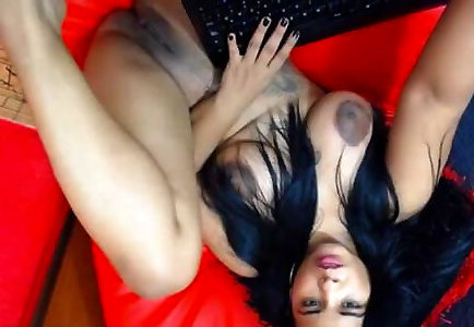 une latina aux gros seins montre ses aréoles de bonne taille sur webcam