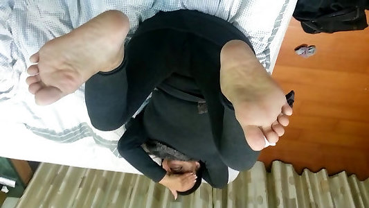 pour réaliser son fantasme fétichiste des pieds, il séduit la fille asiatique avec son manche blanc