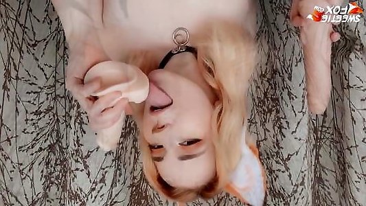 une petite fille aux cheveux roux, une fausse bite géante, une gorge profonde sur une webcam