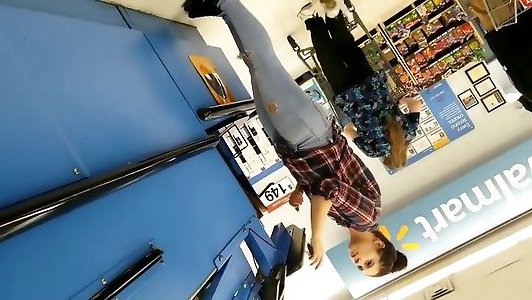 shelbie fait du shopping dans un centre commercial en montrant ses fesses