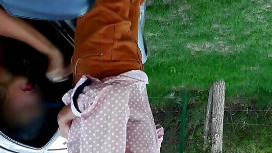 belle-mère gicle plusieurs fois de suite dans un lieu public près de la voiture
