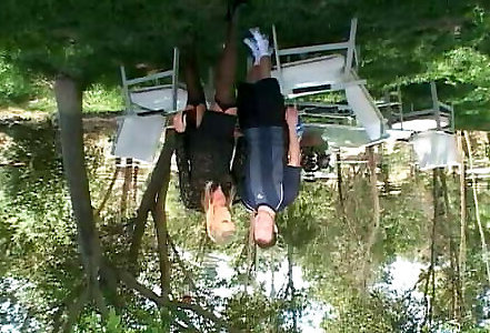 baise à trois en plein air avec double invasion pour la blonde