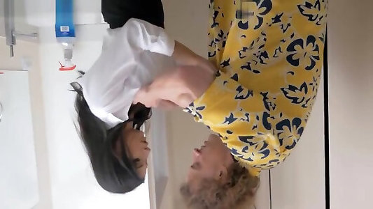 une asiatique excitée se masturbe à côté de son beau-père, se fait pilonner durement