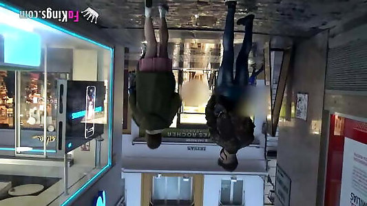 des jumeaux aux gros seins et un cascadeur dans un rail à quatre voies