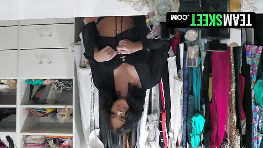 le patron accroché surprend sa baby-sitter excitée en train de jouer avec sa chatte après avoir fait le tour de ses vêtements de sport
