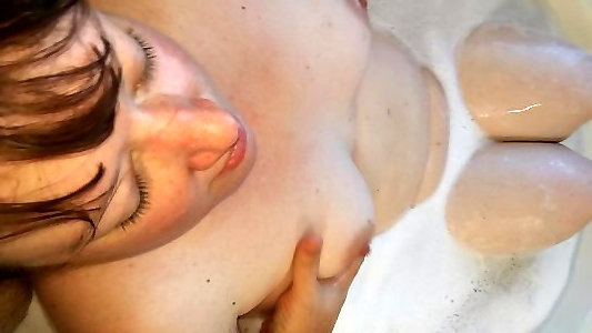 asian busty princess prend une douche dans la baignoire avec ses énormes nichons