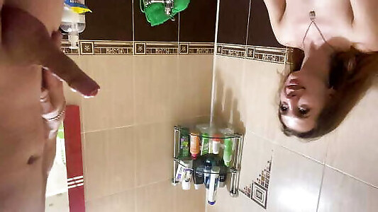 expérience de fellation dans les préliminaires de la salle de bain - 553