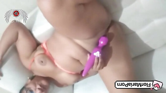 bbw-se déchirant avec un long faux pénis pour une giclée de bonne taille