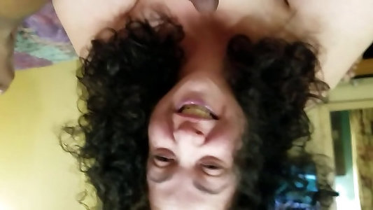fellation par une bbw brune avec gorge profonde, baise faciale et sperme dans la bouche à la fin