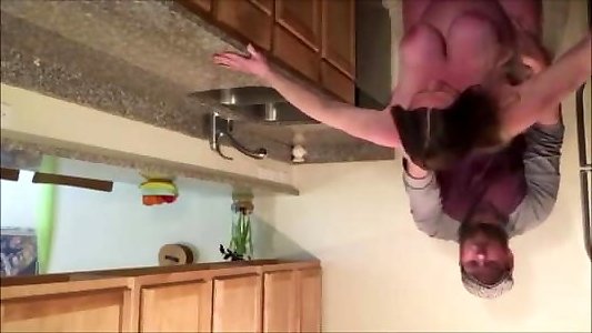 belle-mère fait jouir son gendre sur son cul de salope en culotte dans la cuisine