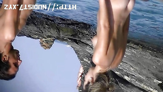 onanism avec la pierre dans le butin et gash sur la plage nudiste