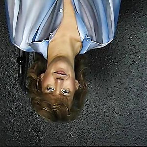 une superbe bombasse aux cheveux roux dans une camisole de force doit monter sur une selle