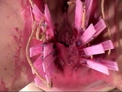 une séance de bondage et de discipline incroyablement chaude avec des chaînes de fouets et des pinces à linge