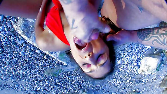 teenie brune avec des tatouages aris dark ravage sur une plage