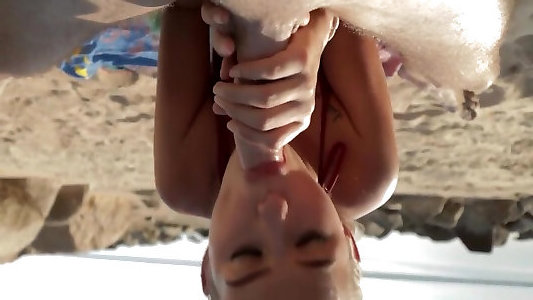rimjob public sur la plage. ma gorge de salope est remplie de sperme