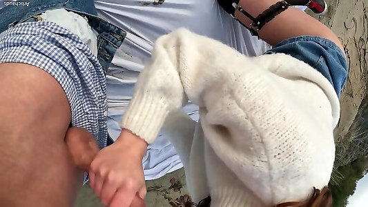 vrai sexe public en plein air, montrant la chatte et le creampie sous leau
