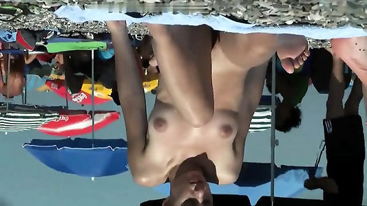 beach damsel naturist étalant ses gams et montrant ses délicieuses lèvres humides