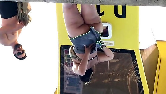 petite amie exhibitionniste se déshabille complètement à la curly hair lace outfit publique et écarte sa chatte