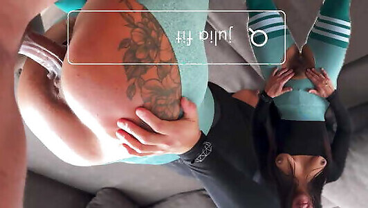 il enfonce son doigt dans les fissures de la fente de sa masseuse dans big fat booty anal interracial leggings